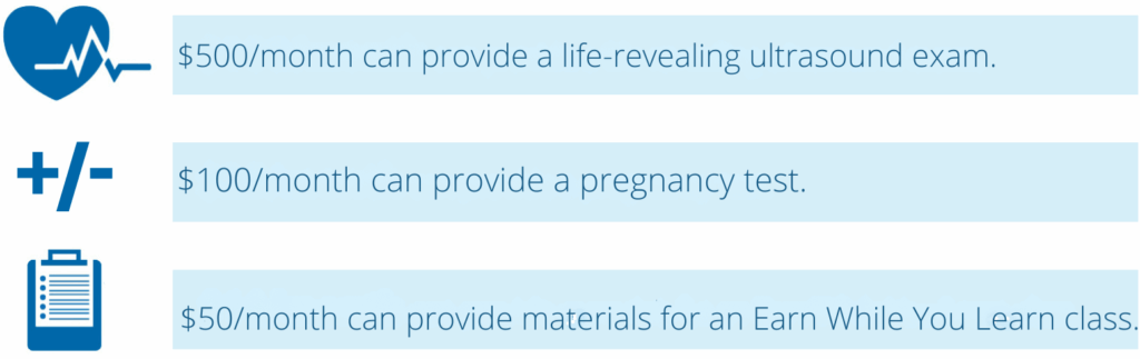 La donación mensual de LifeSponsor es una forma sencilla de marcar la diferencia en la vida de las mujeres que se enfrentan a un embarazo no planificado. Su donación mensual se destina a proporcionar servicios médicos y apoyo a mujeres con embarazos no deseados, lo que permite a muchas de ellas elegir la vida.